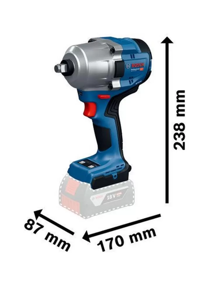 GDS 18V-780 Professional má robustní 1/2palcový držák nástrojů s přídavným ochranným kroužkem, vysoký krouticí moment, více režimů pro různé aplikace, výkonný bezuhlíkový motor, krátkou hlavu a kompaktní, lehkou konstrukci