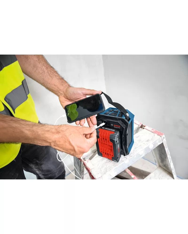 Naplňte svůj pracovní prostor dobrou atmosférou své oblíbené hudby. Náš reproduktor GPB 18V-1 C Professional Bluetooth® poskytuje vynikající kvalitu zvuku prostřednictvím rozhraní Bluetooth® nebo USB a Multi-Speaker Sound. Multi-Speaker Sound umožňuje sdílet a propojovat hudební streamy na více kompatibilních zařízeních prostřednictvím Bluetooth®. Větší flexibilitu usnadňuje kompaktní design a popruh pro přepravu a skladování reproduktoru. Tento Bluetooth reproduktor se snadno nastavuje a je vybaven praktickým nabíjecím portem USB-C® – například pro chytré telefony – a opravdu snadno se používá.