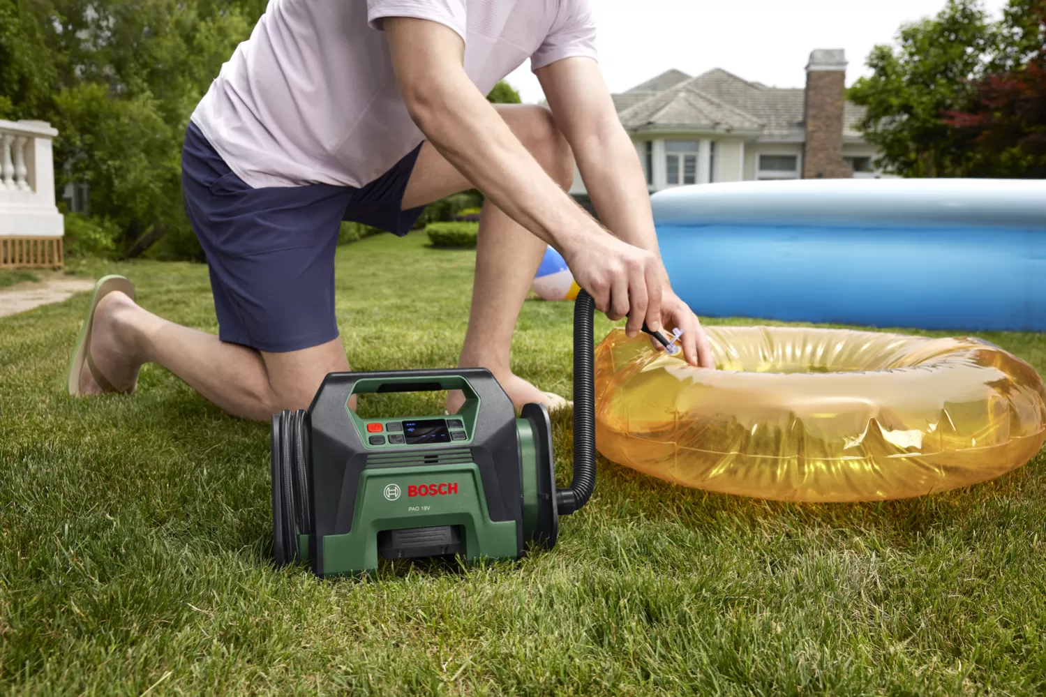 Aku hustilka bez aku 18V PAO 18 V Bosch 0603947400 Výkonný akumulátorový vzduchový kompresor pro pneumatiky a velké nafukovací čluny. Přínos pro… Celý popis