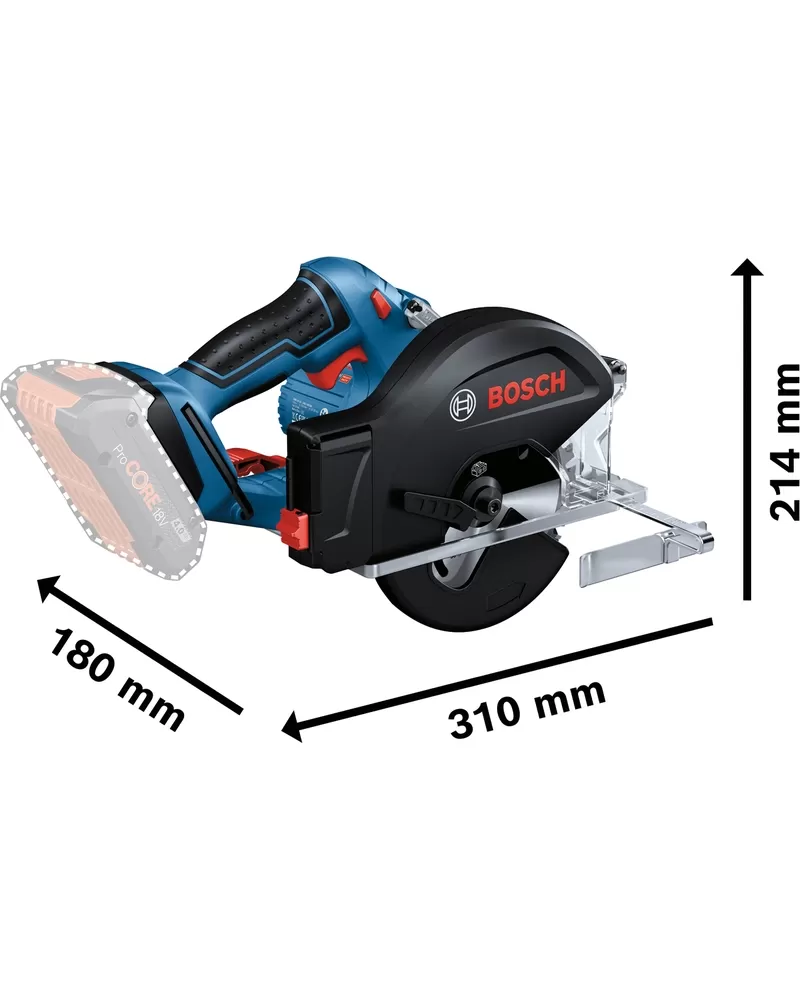 Okružní pila na kov GKM 18V-50 Professional zaručuje rychlou práci a přesné řezy. Mezi její další výhody patří práce téměř bez jisker díky integrovanému a robustnímu koši na sběr špon se snadno otevíratelnými dvířky. S vyznačením linie řezu, průhledem a integrovaným světlem LED zaručuje výhled bez stínů a přesné řezy. Díky optimalizovanému úchopu pro snadné řezání v různých polohách je práce ergonomická a méně únavná.