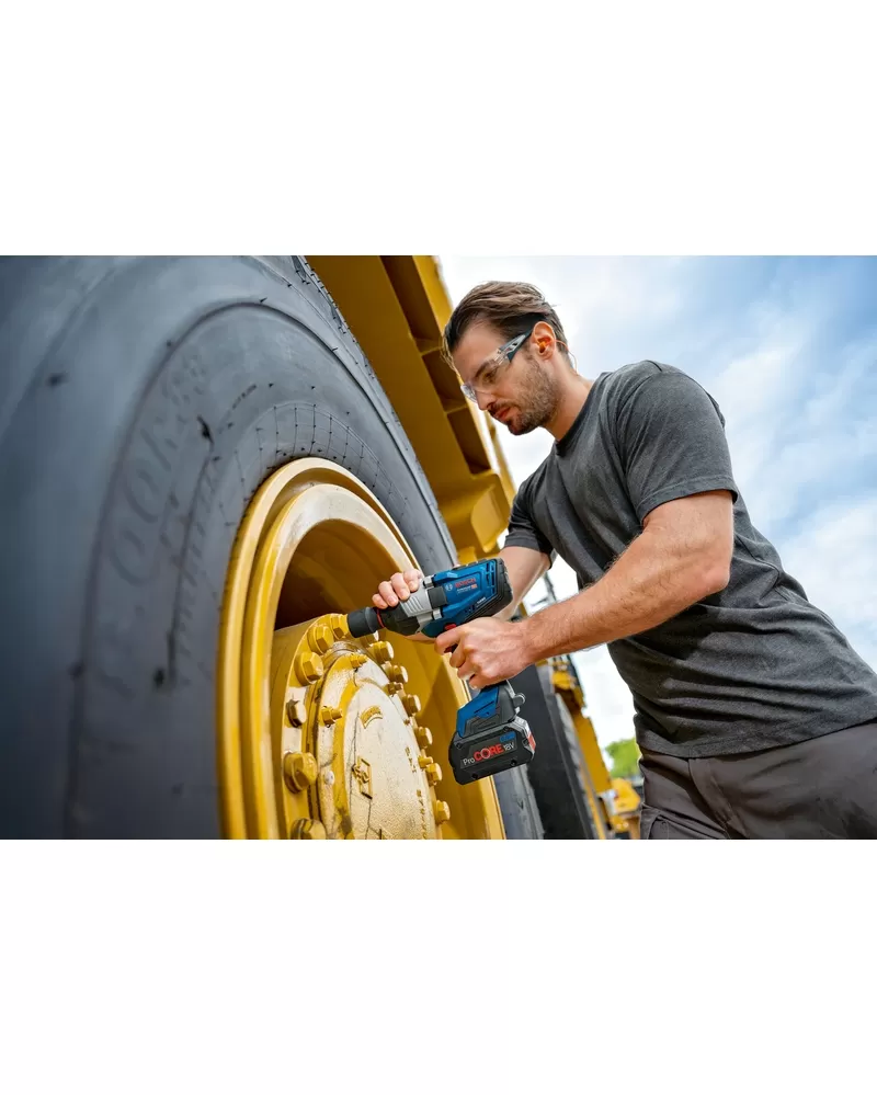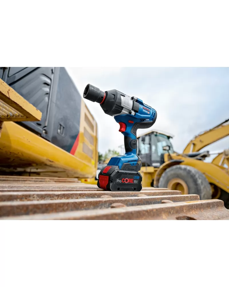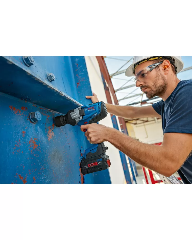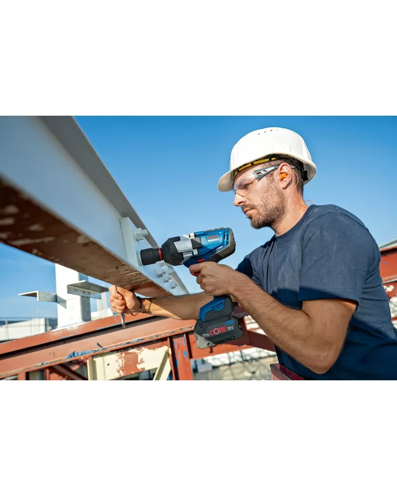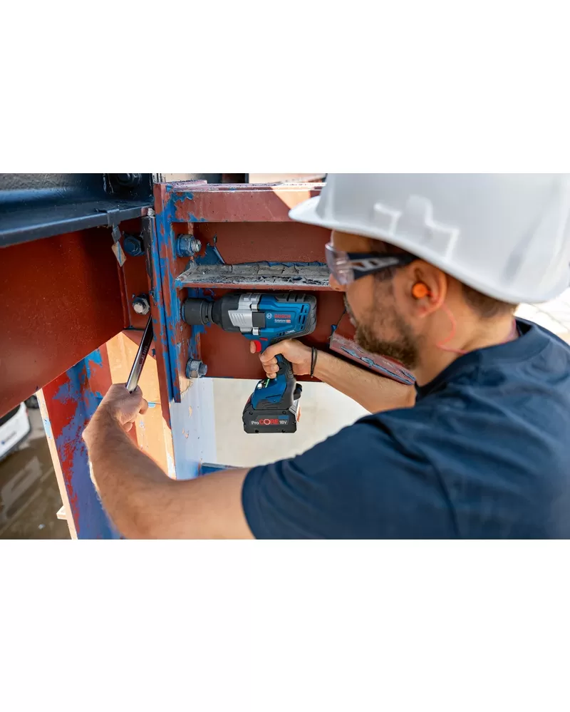 Výjimečné silné nářadí GDS 18V-1600 HC Professional je vhodné pro všechny práce s kovem od M16 do M33, jako je například stavba konstrukcí z oceli, montáž potrubí nebo údržba průmyslových strojů a stavebních vozidel. Tento rázový utahovák je ideální vždy, když je potřeba maximální síla na odstranění zrezivělých či natřených šroubů a matic. Nářadí je kompatibilní se všemi akumulátory a nabíječkami ze systému AMPShare Battery Alliance, včetně akumulátorů a nabíječek v 18V systému Bosch Professional. Pro maximální výkon použijte ProCORE18V ? 5,5 Ah