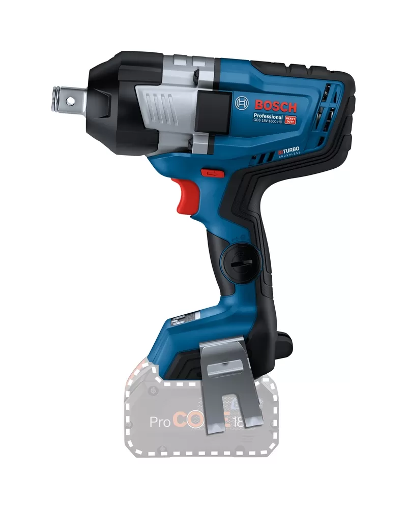 GDS 18V-1600 HC Professional je mimořádně výkonný 3/4" rázový utahovák s technologií BITURBO Brushless pro nejnáročnější použití. Vestavěný bezuhlíkový motor kombinuje výkon síťového nářadí se svobodou bez kabelů a je plně optimalizovaný pro akumulátory ProCORE18V s utahovacím momentem 1 600 Nm a povolovacím momentem 2 200 Nm. Díky nastavitelnému režimu automatického uvolnění šroubu Auto Bolt Release (ABR) se vyhnete ztrátě či pádu kovových šroubů nebo matic po jejich uvolnění, což zaručuje pohodlné ovládání. Vysoká všestrannost regulace výkonu je zajištěna třemi nastaveními rychlosti a krouticího momentu, které umožňují přizpůsobení požadavkům aktuální práce. Všechna nastavení nářadí lze pohodlně upravit přes aplikaci Bosch Toolbox.