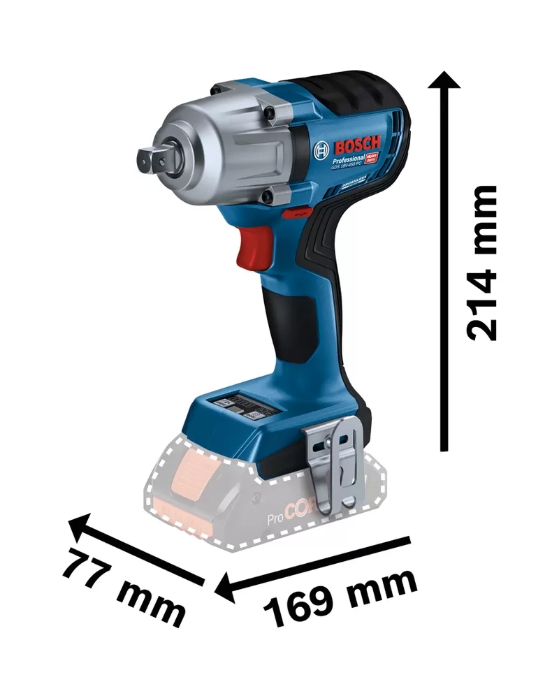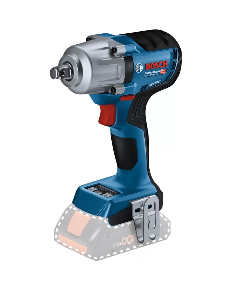 GDS 18V-450 HC je vybaven indikátorem stavu nářadí, LED světlem a sponou na opasek pro větší pohodlí.