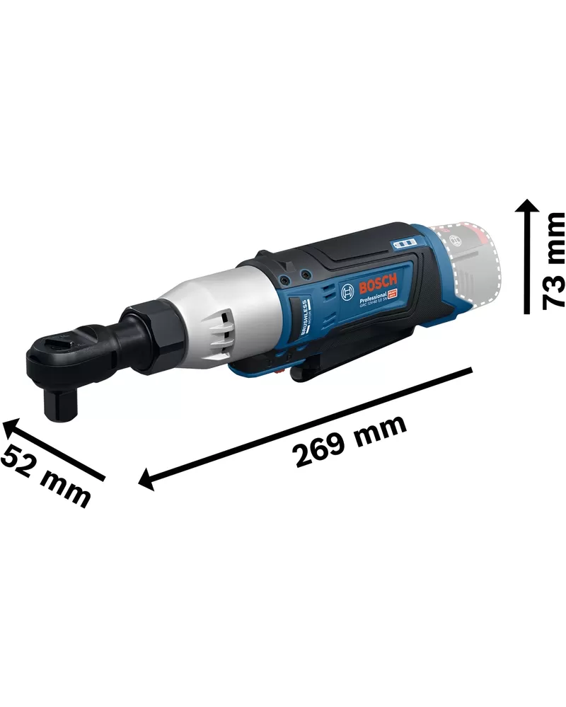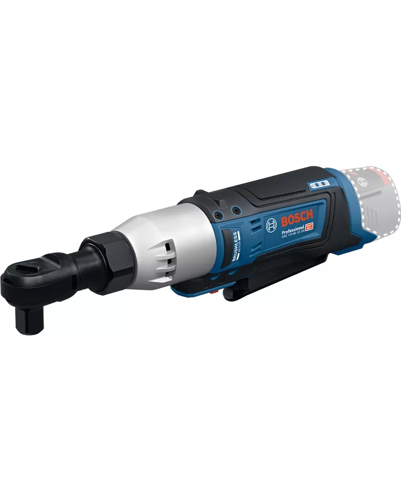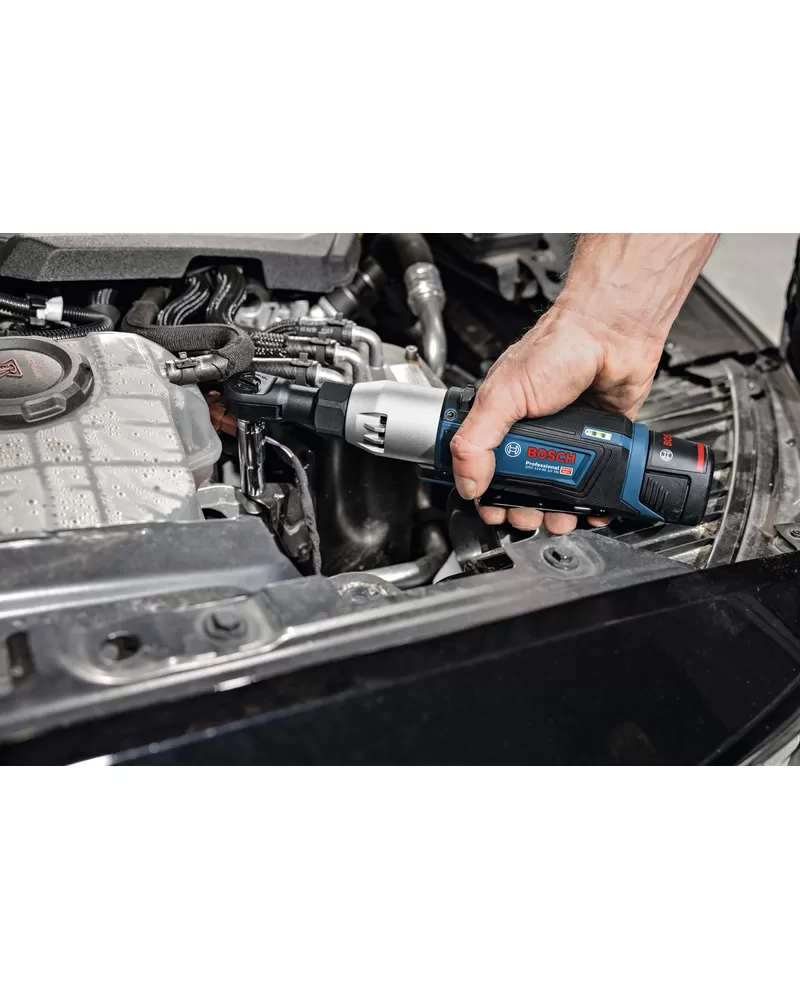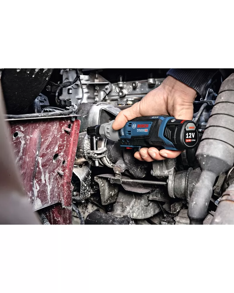Ráčnový klíč GRC 12V-60 1/2 SN je určen na povolování a utahování upevňovacích prvků ve stísněných prostorách. Je kompatibilní se všemi 12V akumulátory Bosch Professional.