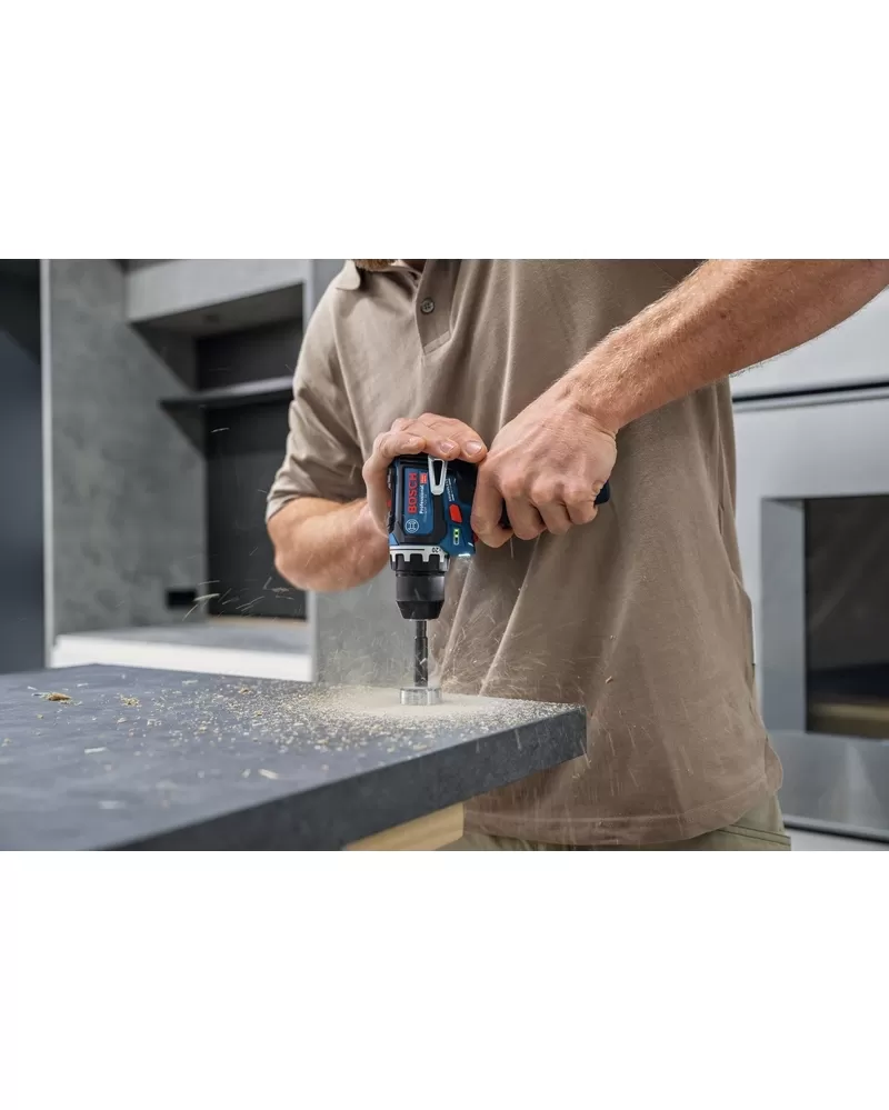 Další informace: GSR 12V-32 Professional je vybaven funkcí Advanced KickBack Control, bezuhlíkovým motorem, robustním kovovým sklíčidlem, jasným pracovním světlem a sponou na opasek.