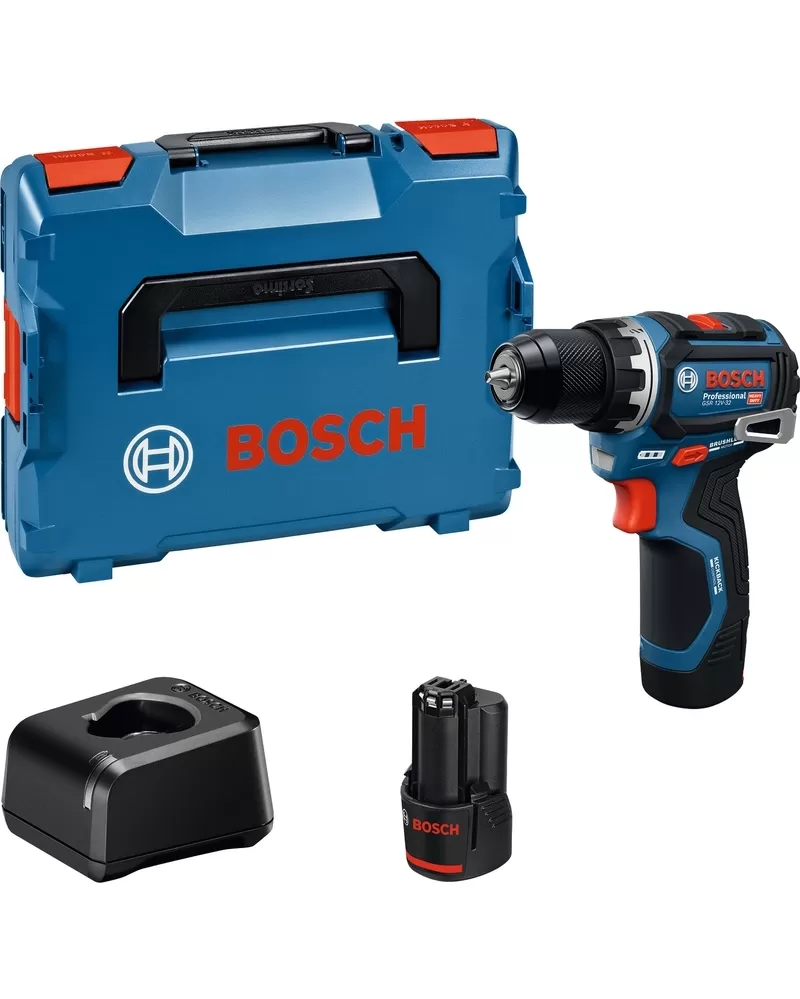 Další informace: GSR 12V-32 Professional je vybaven funkcí Advanced KickBack Control, bezuhlíkovým motorem, robustním kovovým sklíčidlem, jasným pracovním světlem a sponou na opasek.