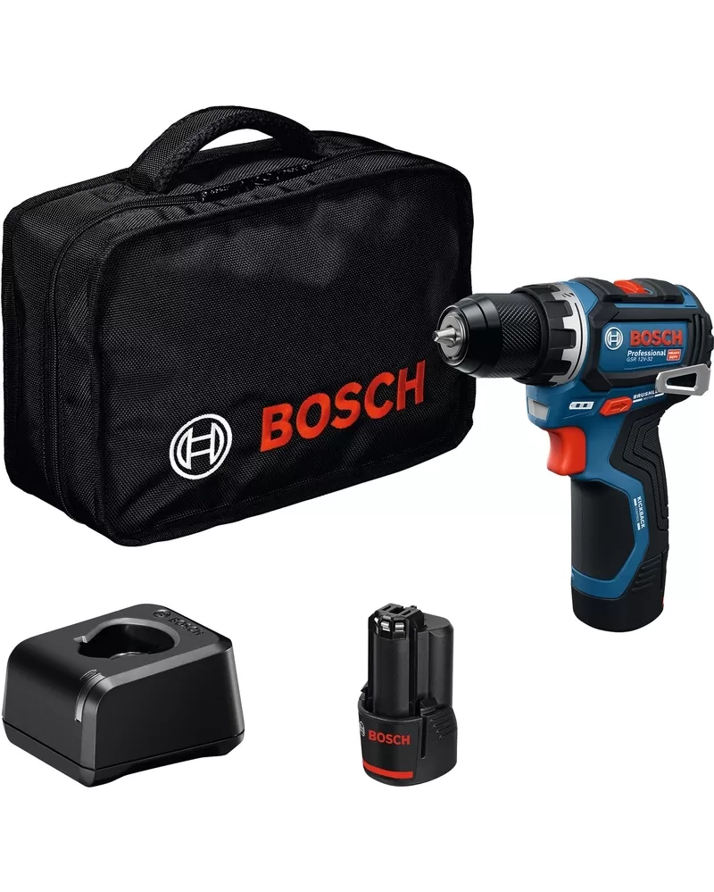 Další informace: GSR 12V-32 Professional je vybaven funkcí Advanced KickBack Control, bezuhlíkovým motorem, robustním kovovým sklíčidlem, jasným pracovním světlem a sponou na opasek.