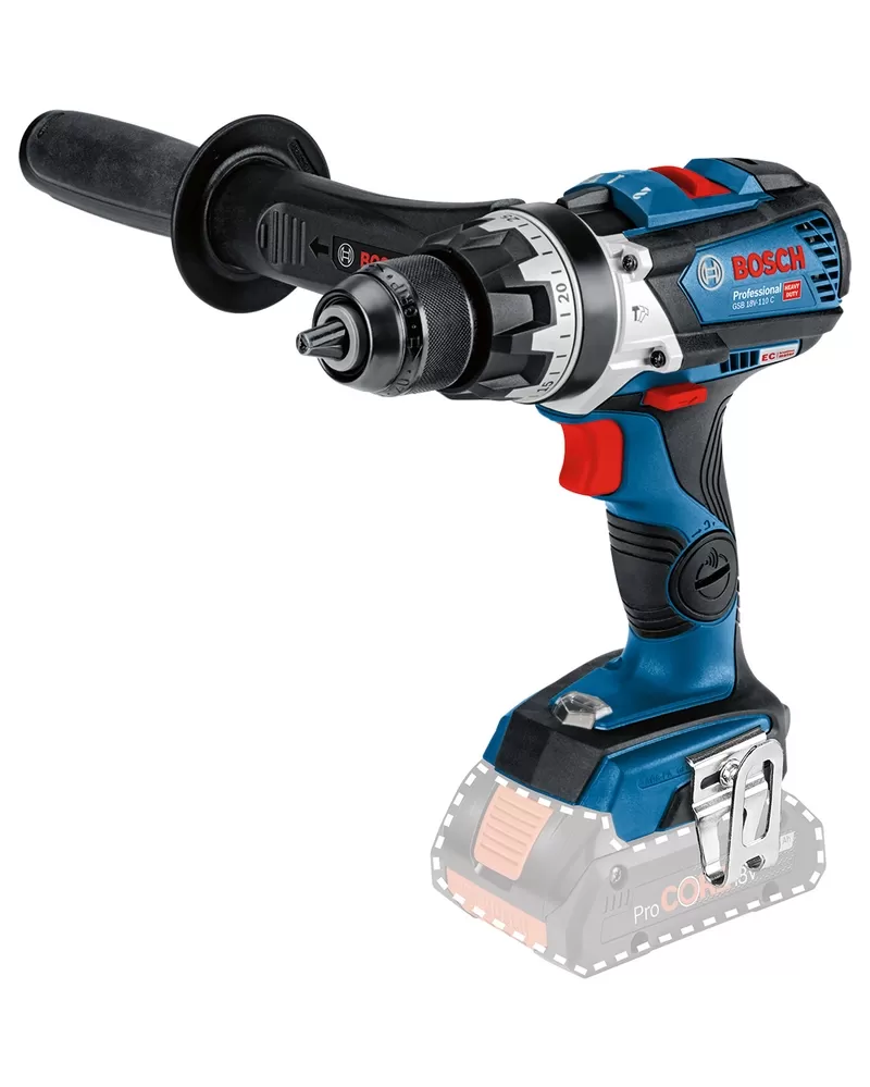 GSB 18V-110 C Professional je také vybaven 2rychlostní převodovkou, automatickým zámkem, funkcí KickBack Control, Electronic Motor Protection, rukojetí, Li-ion a přesnou spojkou.