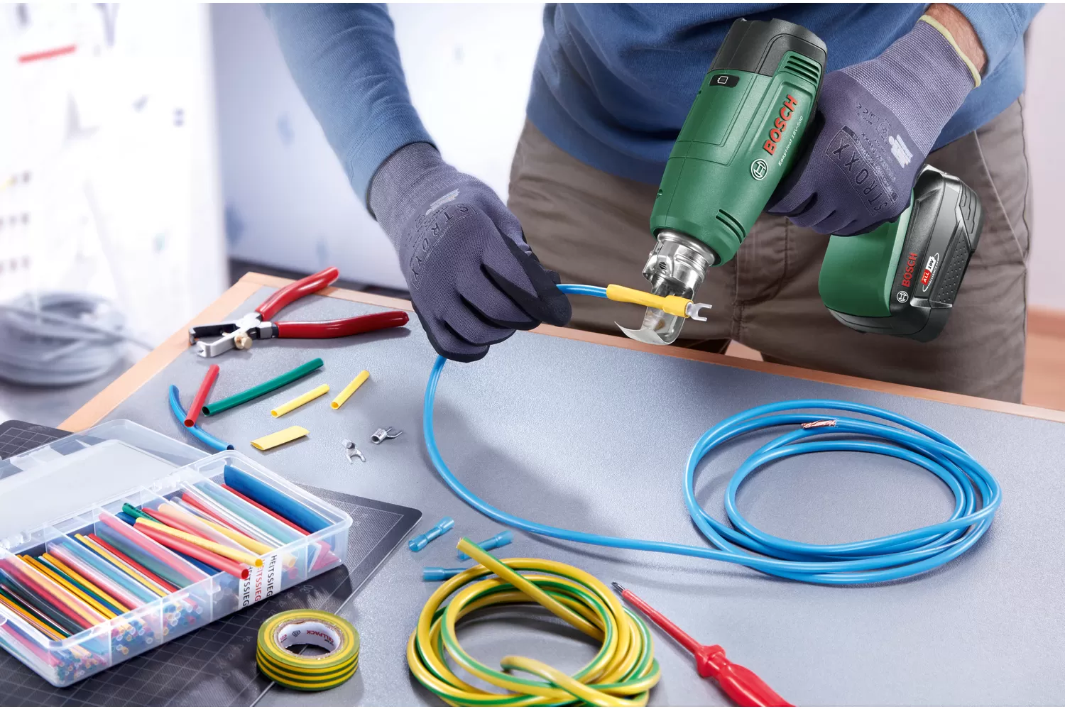 • Akumulátorová horkovzdušná pistole pro kutily pro rychlou práci na cestách: ideální na smršťování kabelů, odstraňování štítků a další snadné úkoly
