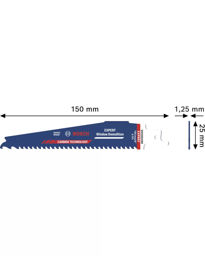 • Zuby jsou navařeny na čepel z vysoce pružné uhlíkové oceli za použití karbidové technologie. To umožňuje rychlé řezání a intenzivní zátěž i při nejnáročnějších demoličních úkonech (např. kotvicích vysokopevnostních okenních šroubů)